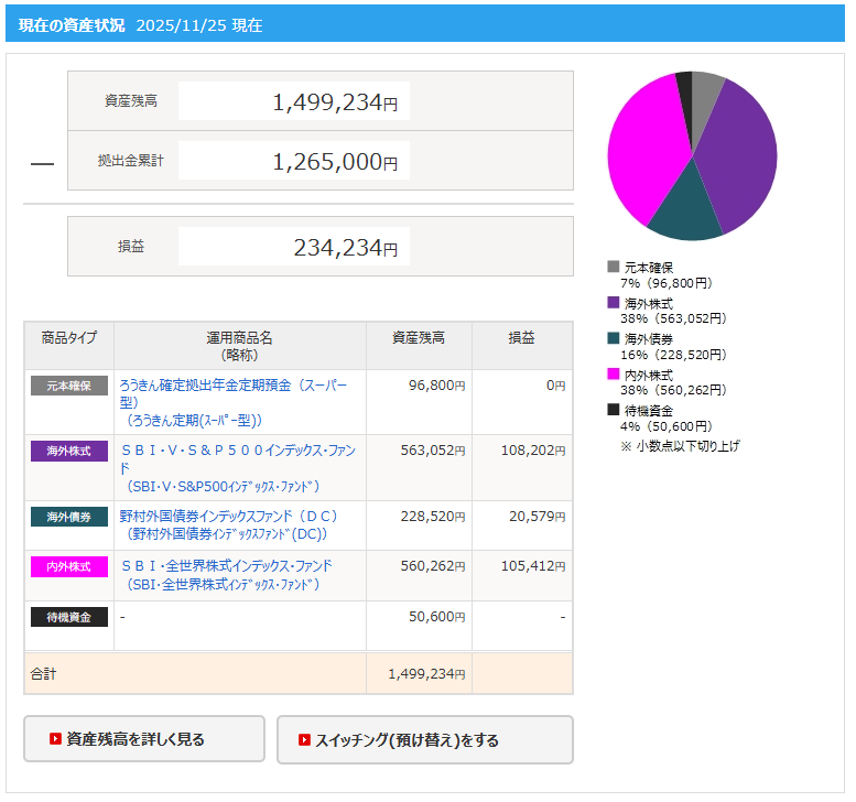 また、企業DCとは別に新NISAでつみたて投資もしています。