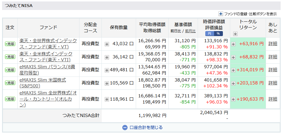 ※2024年より新NISA移行のためつみたてNISAは現在、積立停止となり、運用のみとなってます!